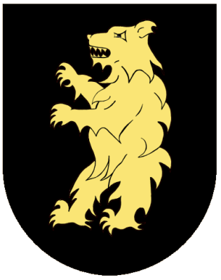 aufrechtstehender goldener Bär auf schwarzem Grund