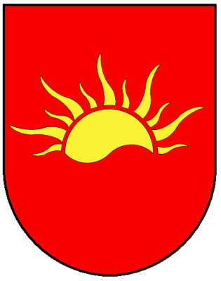 aufgehende goldene Sonne auf rotem Grund